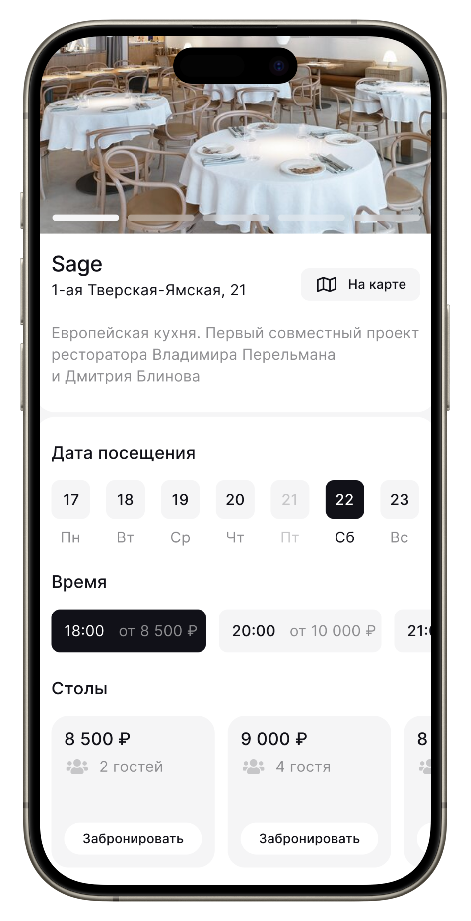 Savóre — приложение для бронирования столов в ресторанах с высоким спросом